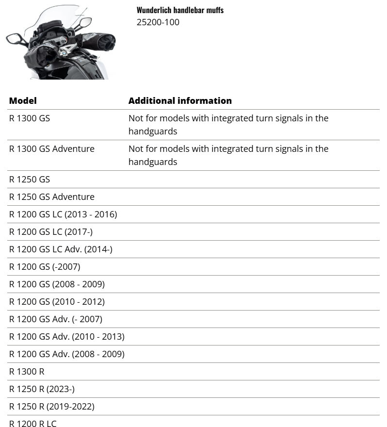 핸들바 머프는 다양한 BMW모터사이클에 보편적으로 사용할 수 있습니다.