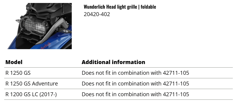분덜리히 BMW R1250GS, R1250GSA (17-) 전용 헤드라이트 접이식 가드-블랙 20420-402